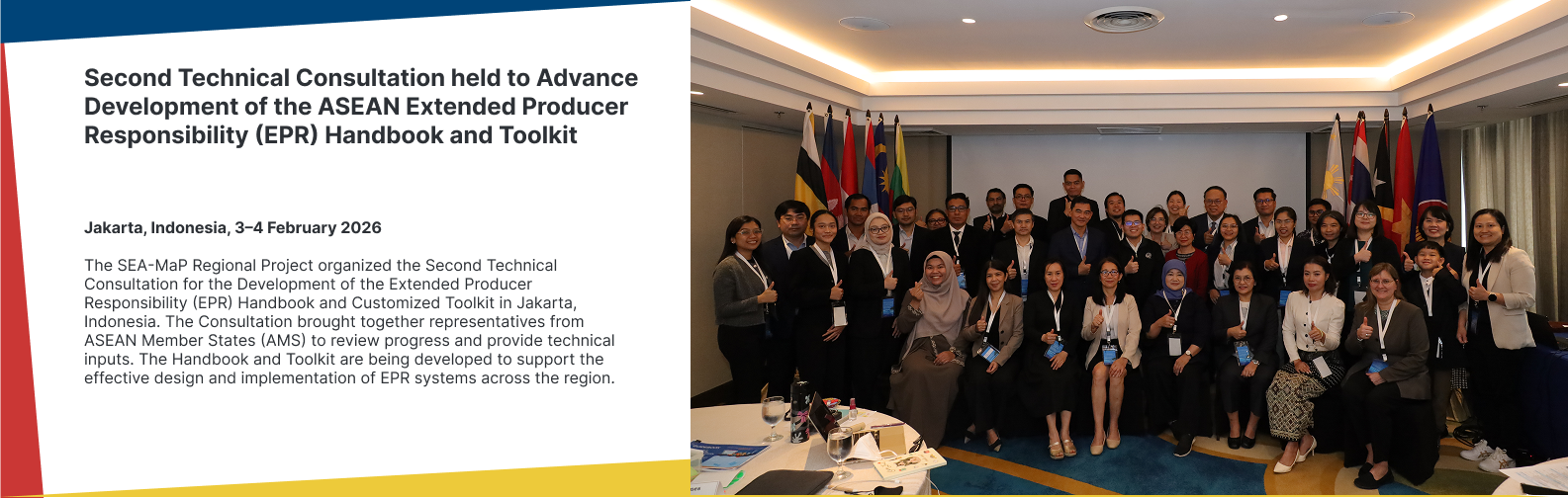 Jakarta, Indonesia, 3–4 February 2026: The SEA-MaP Regional Project organized the Second Technical Consultation for the Development of the Extended Producer Responsibility (EPR) Handbook and Customized Toolkit in Jakarta, Indonesia. The Consultation brought together representatives from ASEAN Member States (AMS) to review progress and provide technical inputs. The Handbook and Toolkit are being developed to support the effective design and implementation of EPR systems across the region.