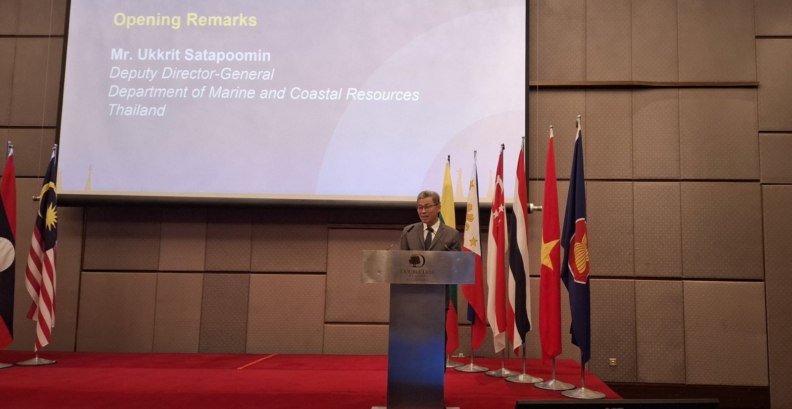 Mr. Ukkrit Satapoomin, Deputy Director-General at the Department of Marine and Coastal Resources, Ministry of Natural Resources and Environment of the Kingdom of Thailand; in his capacity as representative of Chair of the ASEAN Working Group on Coastal and Marine Environment (AWGCME) and Co-Chair of the SEA-MaP Project Steering Committee (PSC); as well as by Mr. Ahmad Rizal bin Khalit, Deputy Undersecretary of the Environmental Management Division, Ministry of Natural Resources and Environmental Sustainability (NRES) of Malaysia, as a representative of the host country, opened and welcomed participants to the Workshop.